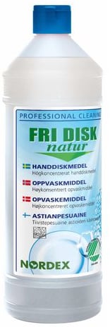 Med Fri Disk Nature får du ett professionellt universalrengöringsmedel Ge ditt hem en professionell rengöring med ett rengöringsmedel som är säkert nog för dina händer och starkt nog att tackla de tuffaste fläckarna. Den här luktfria sammansättningen utan färgämnen är unikt koncentrerad och kan lätt spädas ut till en styrka som passar alla rengöringsuppgifter. Nordex Fri Disk passar bra för både disk och att tvätta händerna, eftersom den är skonsam för huden och säker att använda varje dag. Den har inga starka tillsatser, så den kan användas direkt på ömtåliga tyger – till och med för handtvätt av nylon eller ull. Få dina målade och belagda ytor att glänsa och se fina ut igen utan att riskera skador på dess ytor. När du behöver något starkare går det bra att applicera koncentratet på inredning, fönster och golv. Dosering: Handdisk: 2 ml (ett pumptryck) till 10 liter vatten. Lätt rengöring: 5 ml till 10 liter vatten.