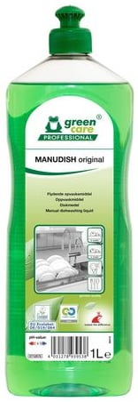 Manudish original är ett ekologiskt, intensivt rengörande diskmedel Tar hänsyn till biologiska cykler, värnar om människors hälsa och städpersonalens säkerhet. Produktion med omfattande användning av förnybara råvaror och energi med hjälp av 100% vattenkraft, solenergi och jordvärme. Skonsam mot huden. Låg dosering. Oparfymerat.