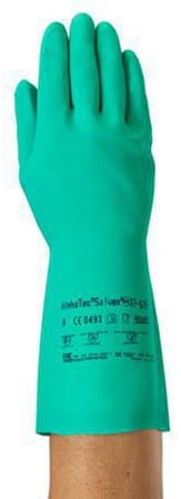 Handske ANSELL Solvex är det idealiska valet för säker hantering i många olika arbetsmiljöer där det förekommer skarpa kemikalier. Handske ANSELL Solvex velouriserade bomullsfoder kombinerat med nitrilytans flexibilitet ger en utmärkt komfort. Omvänd lozenge-finish förbättrar greppet ytterligare. Sandpatch-finishen ger handsken en slät yta som minskar indirekta kostnader tack vare färre kassationer av ömtåliga detaljer. Fullt återanvändbar med oöverträffat nötningsmotstånd. Överlag är detta en mångsidig flockad handske med 0,38 mm tjocklek för en lång rad olika tillämpningar, så som jordbruk och vinodling, bilindustrin, bygg och anläggning, kemiindustrin, glasindustrin, metallindustrin.