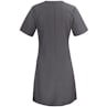 En lätt insvängd klänning med V-ringning som kombinerar stil och funktionalitet. Modellen är utrustad med dubbla snedställda framfickor, varav en med integrerad nyckel- och korthållare för enkel förvaring. En praktisk bröstficka ger extra förvaringsmöjligheter, och en dekorativ ringknapp i V-ringningen tillför en elegant detalj. Med en rygglängd på 100 cm i storlek M erbjuder klänningen en bekväm passform som passar för både arbete och vardagsbruk.