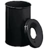Brandsäker papperskorg med självsläckande lock. Papperskorg/avfallstunna med avtagbart, självsläckande lock som minskar syretillförseln och kväver lågorna om det börjar brinna i avfallsbehållaren. Kvalitetskontrollerad och certifierad av TÜV som är en erkänd tysk produktsäkerhetscertifiering. Tillverkad av metall med reptålig epoxihartsbeläggning.