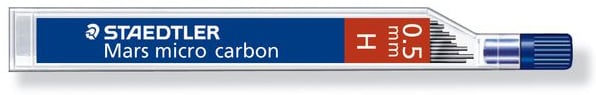 STAEDTLERs Mars Micro Carbon refillstift är extra starka stift för mekaniska stiftpennor. Det här STAEDTLER refillstiftet är väldigt enkelt att använda. Öppna den mekaniska stiftpennan och skjut in stiftet. Stiftet skapar icke-permanenta linjer som enkelt kan torkas bort från många jämna ytor, till exempel plast, metall, lack och läder. Spetsen är perfekt när du vill ha tunna, exakta linjer. Stiftet är mycket tåligt tack vare dess flexibilitet. Det är tillverkat utan PVC eller mjukgörande ämnen, vilket gör det till ett miljömedvetet alternativ.