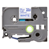 Passar till följande Brother-maskiner:P-Touch 200/210 euro/220/300/310/340/340c/350/540/550.P-Touch 1000/1010/1200/1250/1280/1800/1830/1850/1950.P-Touch 2400/2420/2450/2460/2480/2500/2700.P-Touch 3600.P-Touch 9200/9400/9500/9600. 24mm x 8 m, vit tejp/blå text.