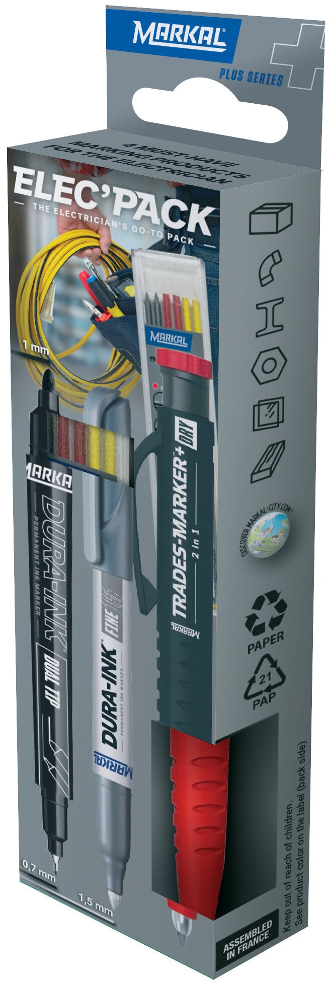- Fungerar med både standard- och färgade blyrefiller och skriver på de flesta ytor, inklusive dammiga, grova, släta, feta eller blöta material.